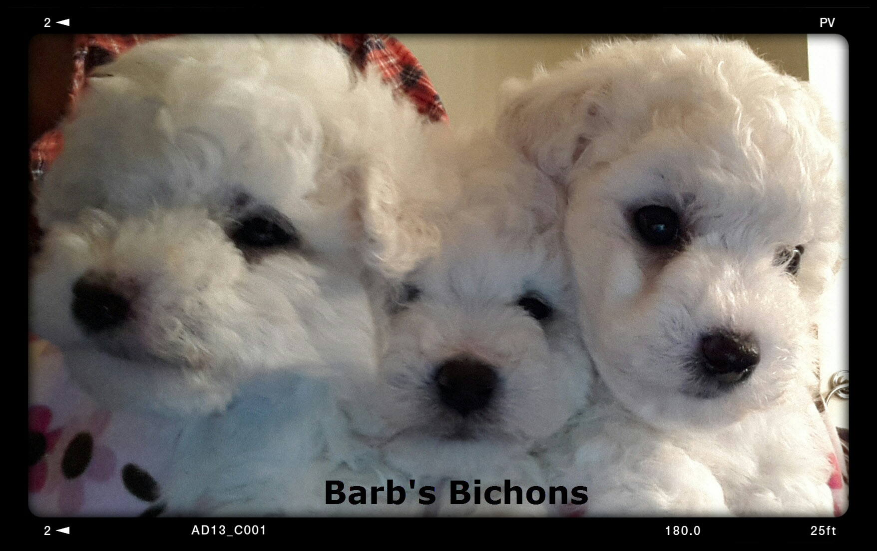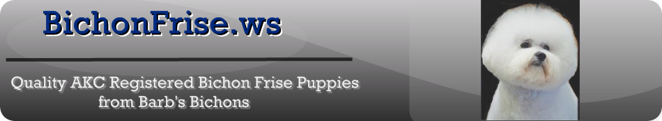 Thanks for visiting my Bichon Frise website. My name is Barb (Barb's Bichons) and I have been raising ONLY Bichon Frise and puppies for close to 20 years. I have learned lots of things about Bichons over the years.