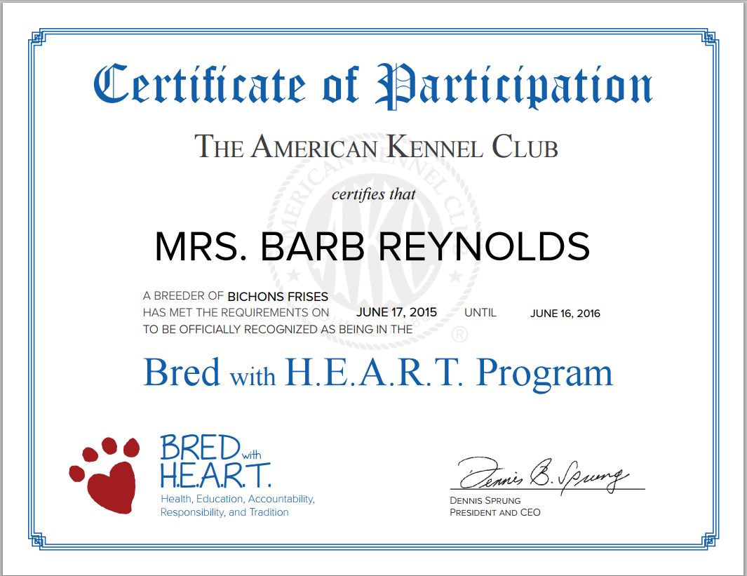An AKC Bred with H.E.A.R.T breeder makes an on-going commitment to the health and well-being of purebred dogs by
