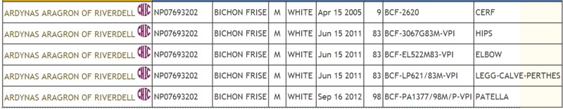 OFFA Health Testing for Ch. Ardynas Aragron of Riverdell (aka Buddy)